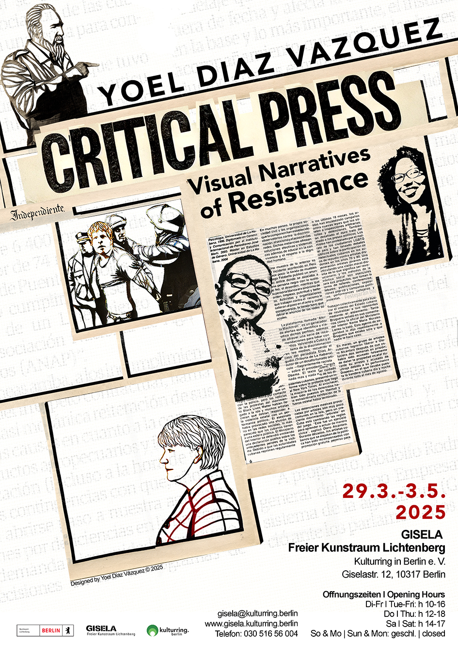 «The exhibition «Critical Press: Visual Narratives of Resistan» unfolds in four phases, presented in two rooms representing the two countries where the artist Yoel Díaz Vázquez has lived the longest: Cuba and Germany.